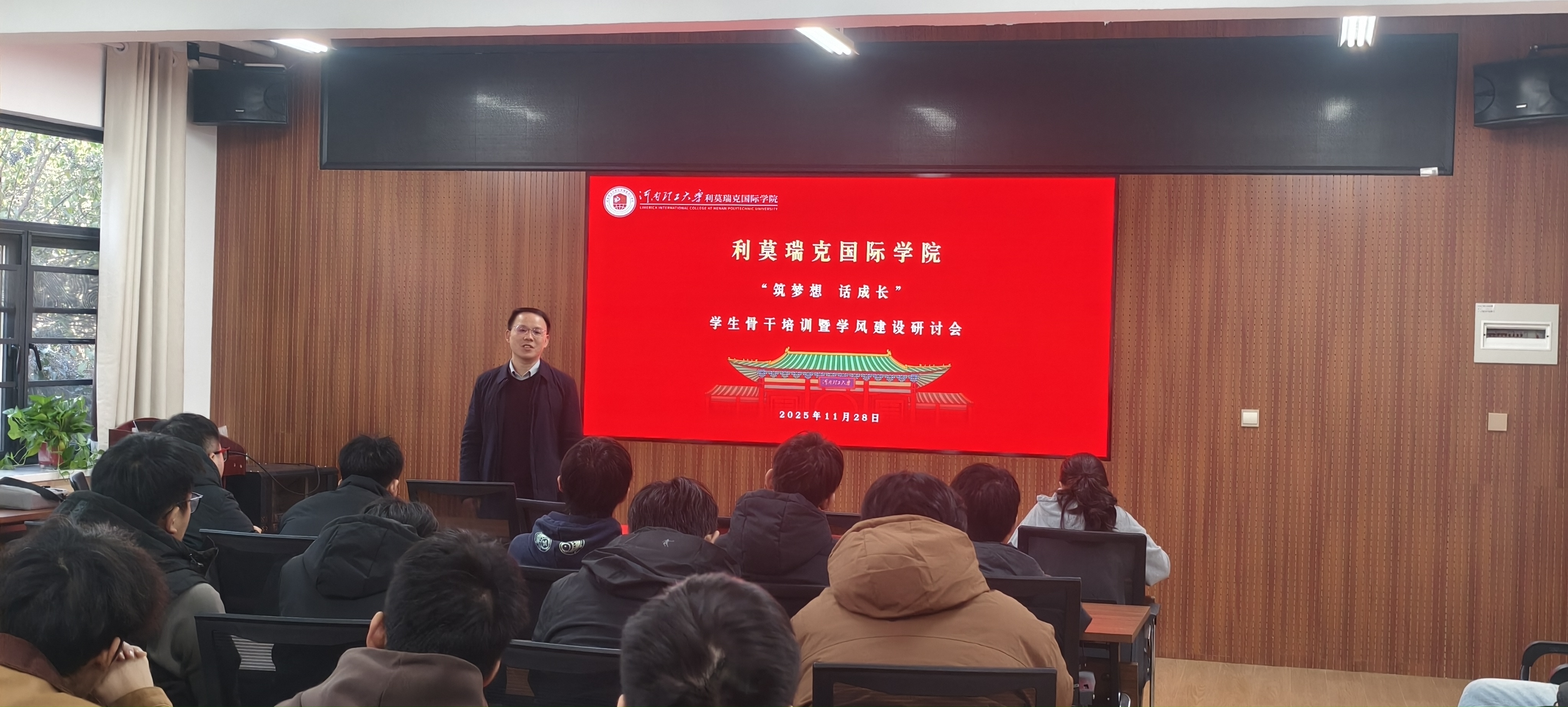 在学院207会议室召开"筑梦想 话成长"学生骨干培训暨学风建设研讨会。学院副院长朱林、党政办主任桂伟峰、辅导员李瑶锦出席会议。学院2024级、2025级学生干部骨干共同参加培训与研讨。