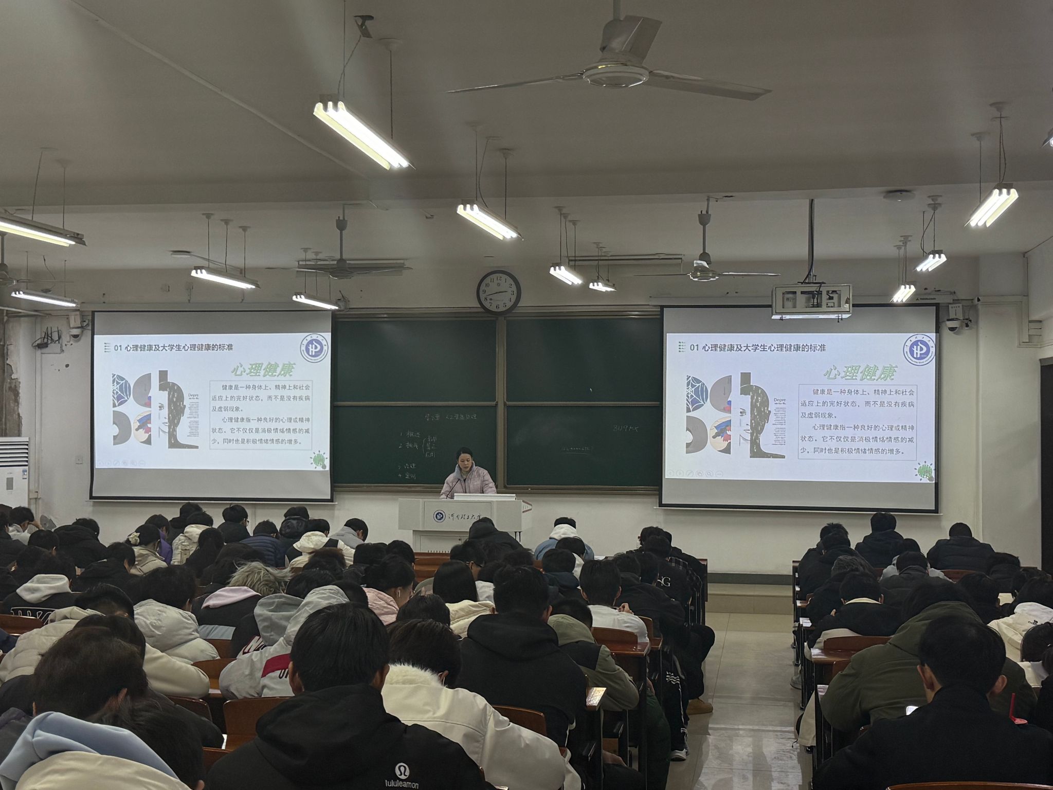 会上,两位辅导员老师围绕大学生常见的学业压力、人际交往困惑及情绪管理等问题进行了深入浅出的讲解。并结合具体案例,详细分析了心理健康对个人成长成才的重要性,并向同学们传授了正念减压、情绪疏导等实用技巧。告诫同学们,在面对困难与挫折时,要学会接纳自我,保持乐观向上的生活态度,必要时应主动寻求老师和专业心理咨询机构的帮助,切勿独自承受。