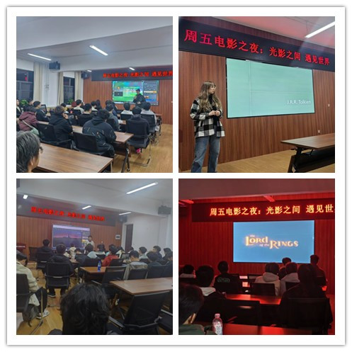 “周五电影之夜:光影之间,遇见世界”活动于每周五晚定期举行。英语教师们轮流引导学生欣赏了《幸福来敲门》《肖申克的救赎》《碟中谍4》《指环王:护戒使者》等经典英文影片。每场观影前,教师均对影片背景、语言特色与文化内涵进行了生动讲解;观影过程中穿插互动交流,鼓励学生结合情节展开对话与思考,实现了语言学习与文化体验的有机融合。