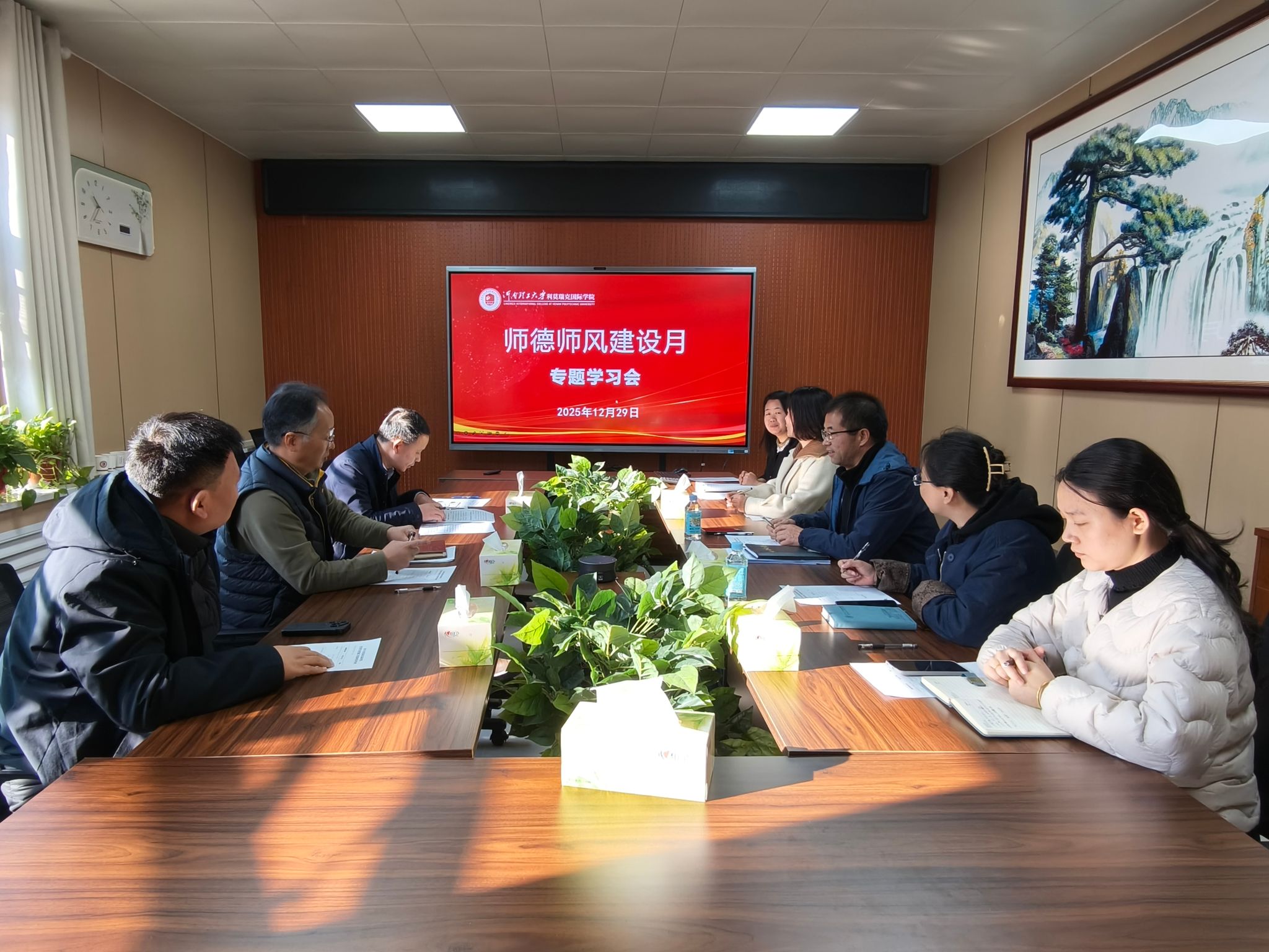 在学院202会议室召开“师德师风建设月”专题学习会。