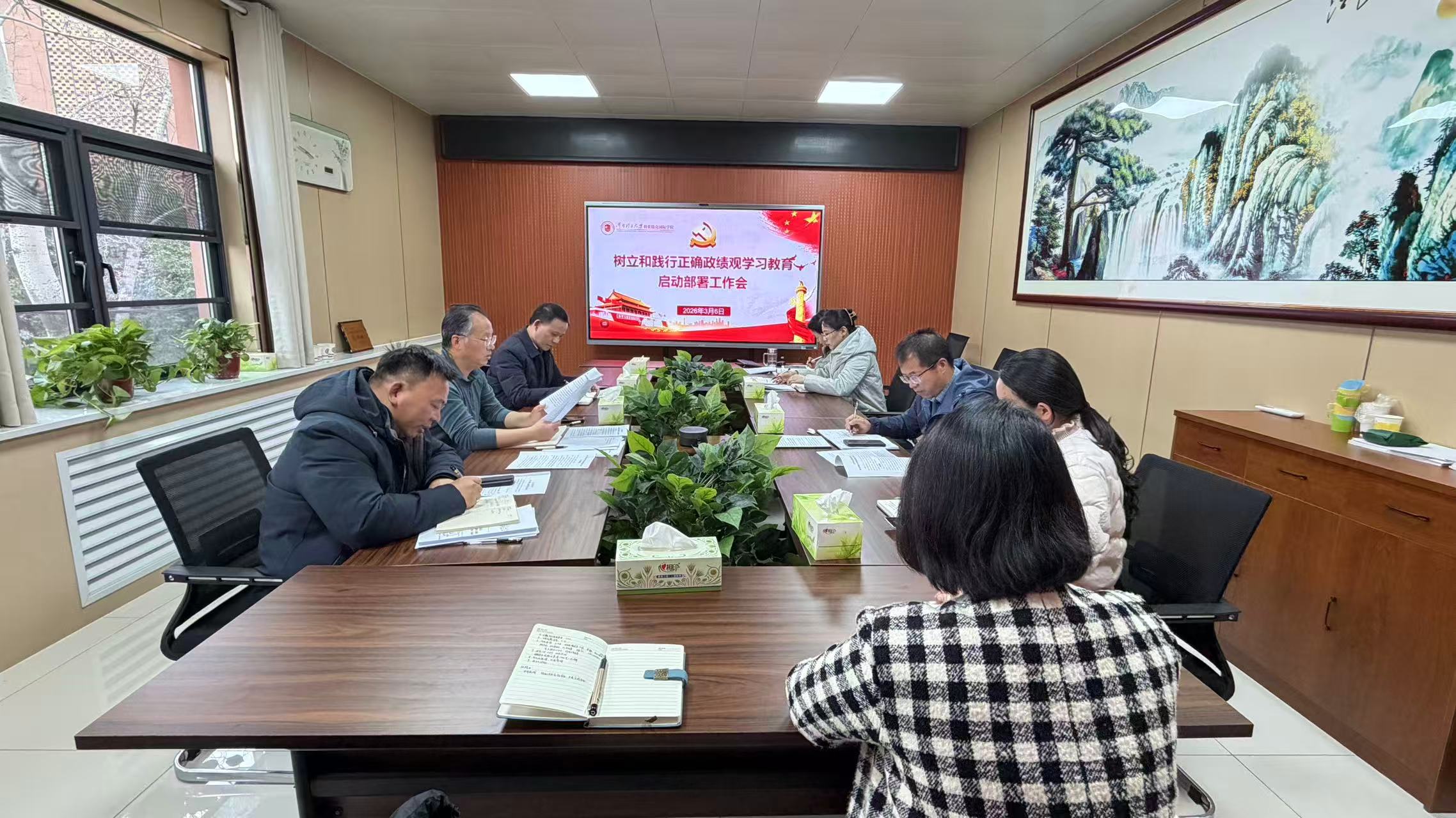 在学院会议室召开树立和践行正确政绩观学习教育启动部署工作会。学院全体党员参加会议,会议由学院党委书记、院长张长森主持。