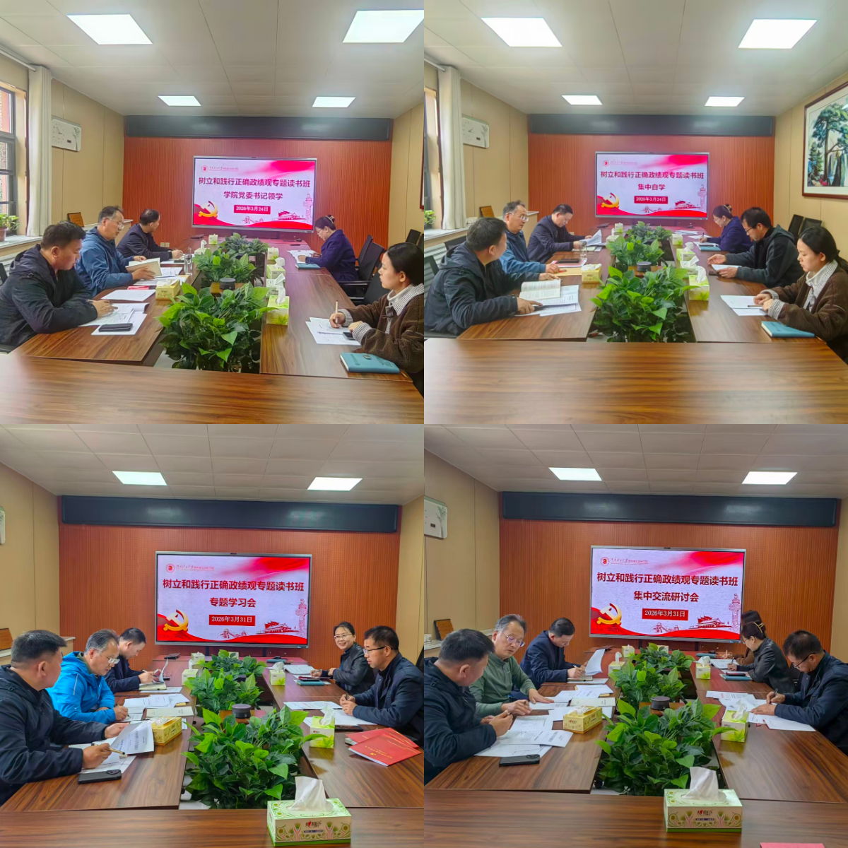 3月31日上午,读书班举行集中专题学习会,深入学习习近平总书记地方工作期间坚持正确政绩观的生动实践,从鲜活案例中感悟习近平总书记一以贯之的为民情怀与实干精神。下午,班子成员围绕习近平总书记关于树立和践行正确政绩观的重要论述及地方工作实践开展集中研讨交流,结合学院实际与分管工作,畅谈学习体会、查摆差距不足、明确努力方向。